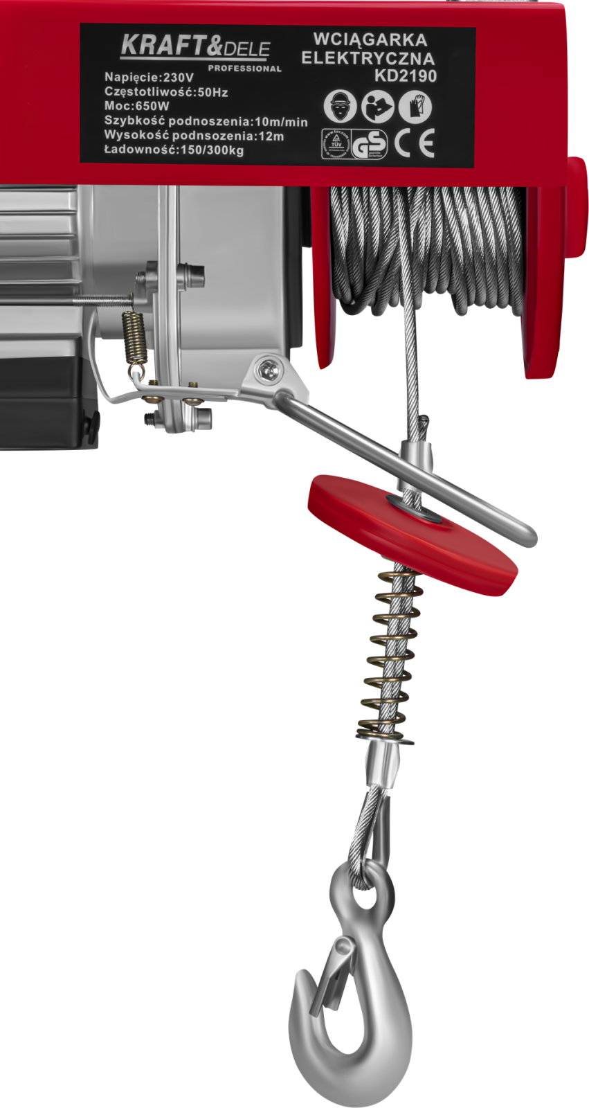 KD2190 este un troliu electric robust și eficient de la KRAFT&DELE, conceput pentru ridicarea și coborârea în siguranță a obiectelor grele.